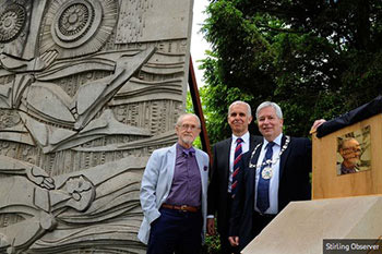 | Charles with Provost Robbins and Duncan Ogilvie alongside the murals new home in Stirling. |